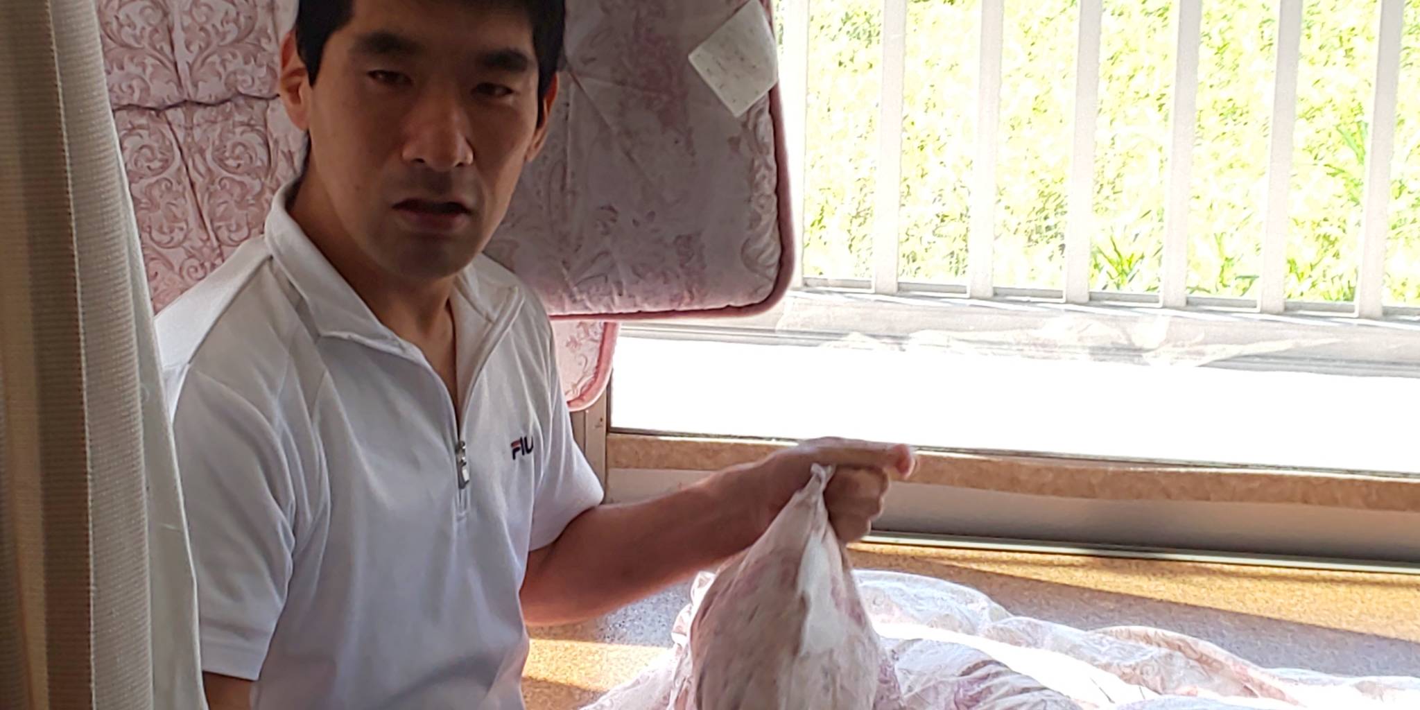 当施設では、毎朝、利用者さんの布団を干させて頂いております。