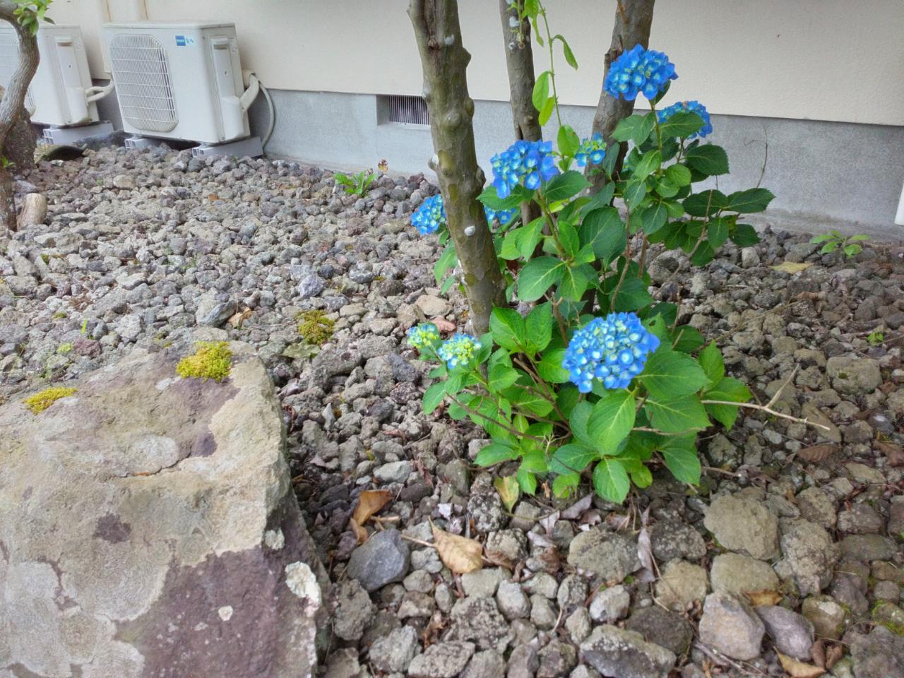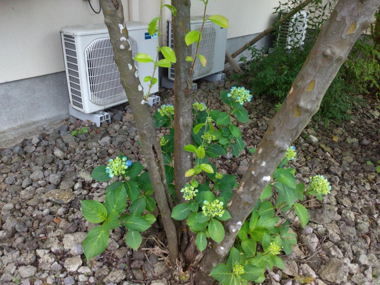 日陰の紫陽花も、先週は色がついてませんでしたが