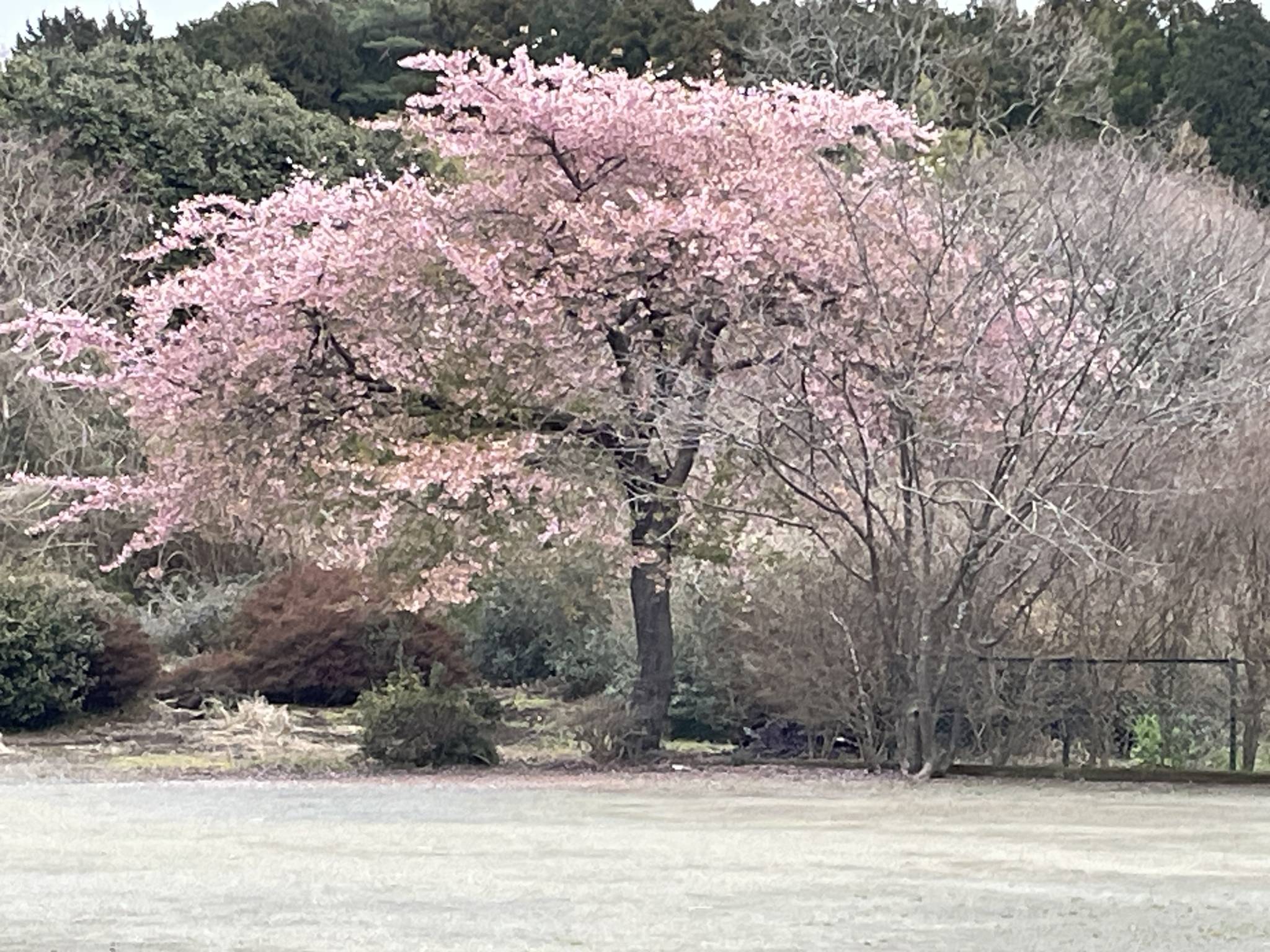 当施設、近所の公園にある‘早咲きの桜”が満開です!